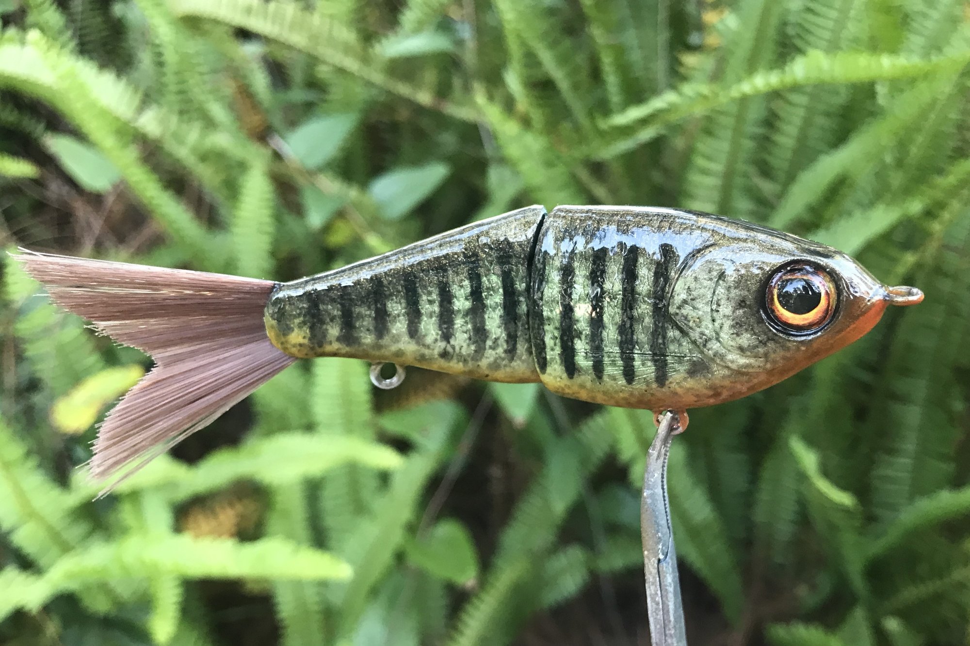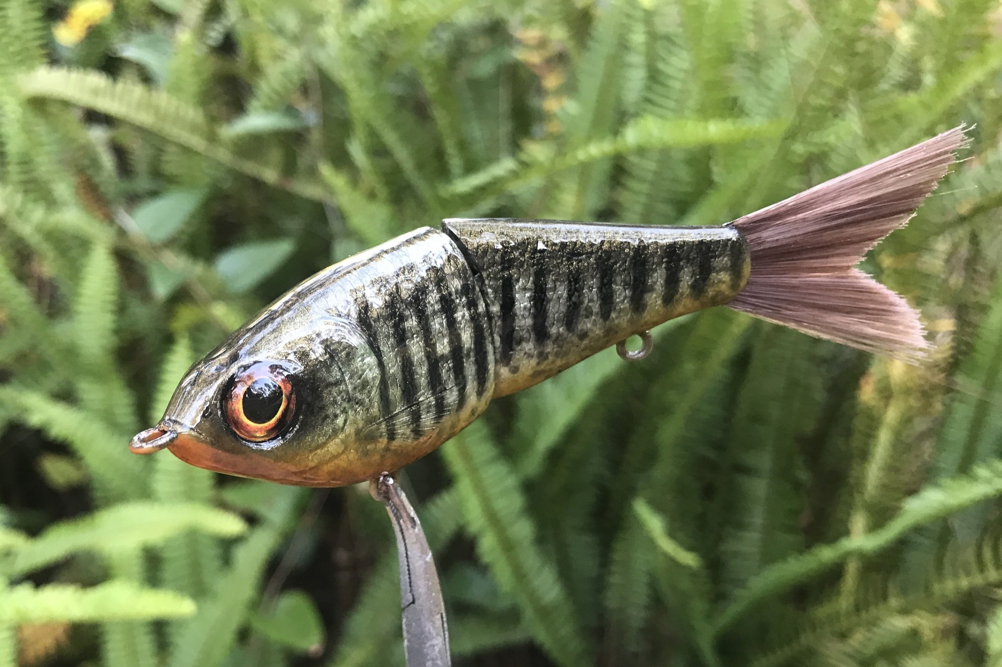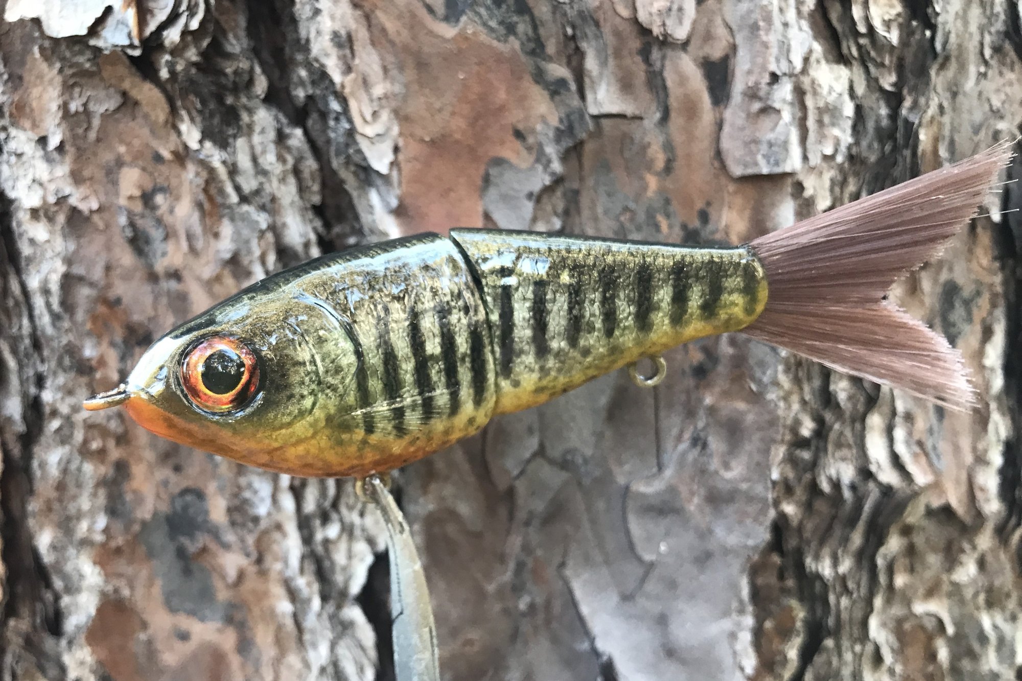 This finesse glide bait features custom eyes, #4 VMC hooks, and high gloss 3X UV resin topcoat. I can upgrade to larger #2 hooks upon request. This is a great starter glide bait, light enough to throw with a worm rod and lethal action.