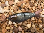 This finesse glide bait features custom eyes, #4 VMC hooks, and high gloss 3X UV resin topcoat. I can upgrade to larger #2 hooks upon request. This is a great starter glide bait, light enough to throw with a worm rod and lethal action.