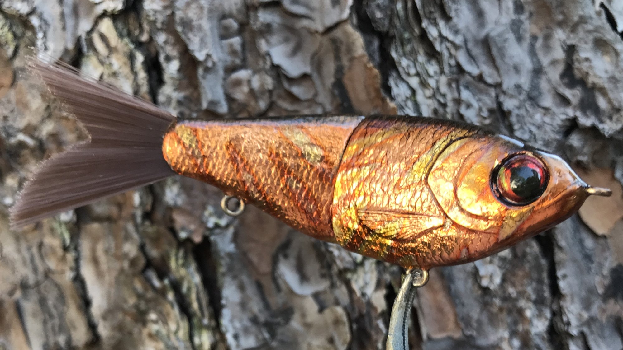 This finesse glide bait features custom eyes, #4 VMC hooks, and high gloss 3X UV resin topcoat. I can upgrade to larger #2 hooks upon request. This is a great starter glide bait, light enough to throw with a worm rod and lethal action.