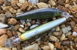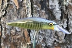 My PT series features custom eyes, #6 trebles and a high gloss 2X UV resin clearcoat. The is a shallow running heavy weight transfer jerkbait. A great bait for spooky post-spawn fish or highly pressured lakes, it has an excellent darting and wobbling action.