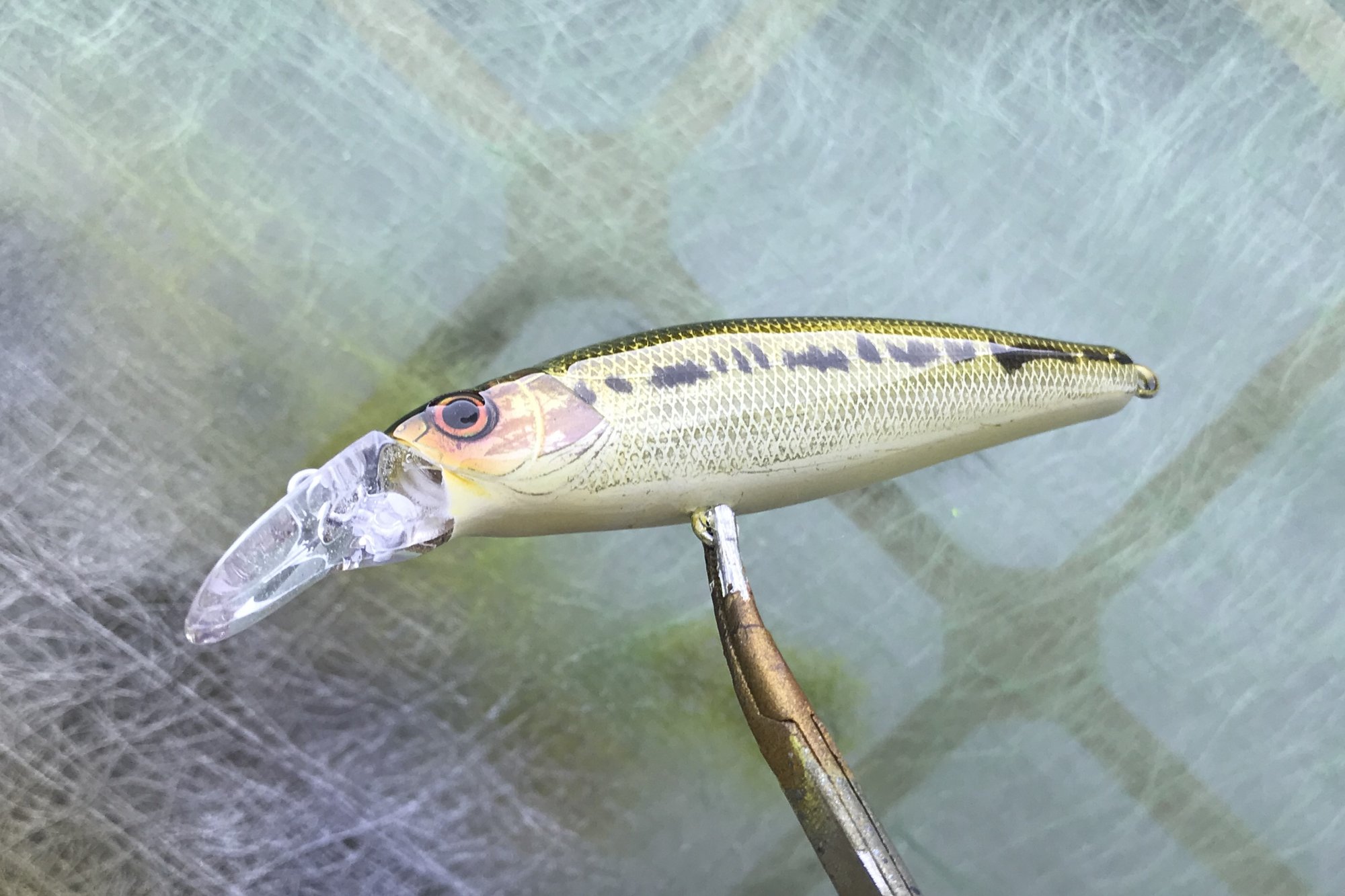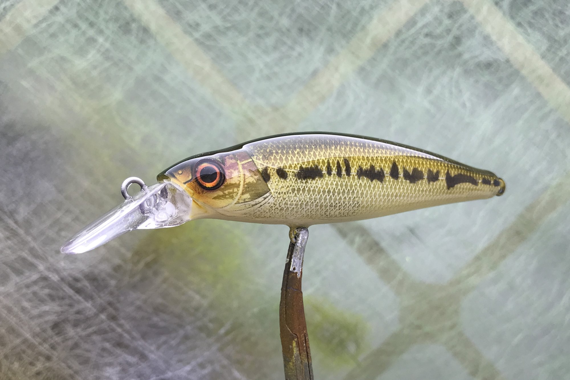 My WB series features custom eyes, #4 trebles and a high gloss 2X UV resin clearcoat. The is a shallow running heavy weight transfer jerkbait. A great bait for spooky post-spawn fish or highly pressured lakes, it has an excellent darting and wobbling action.