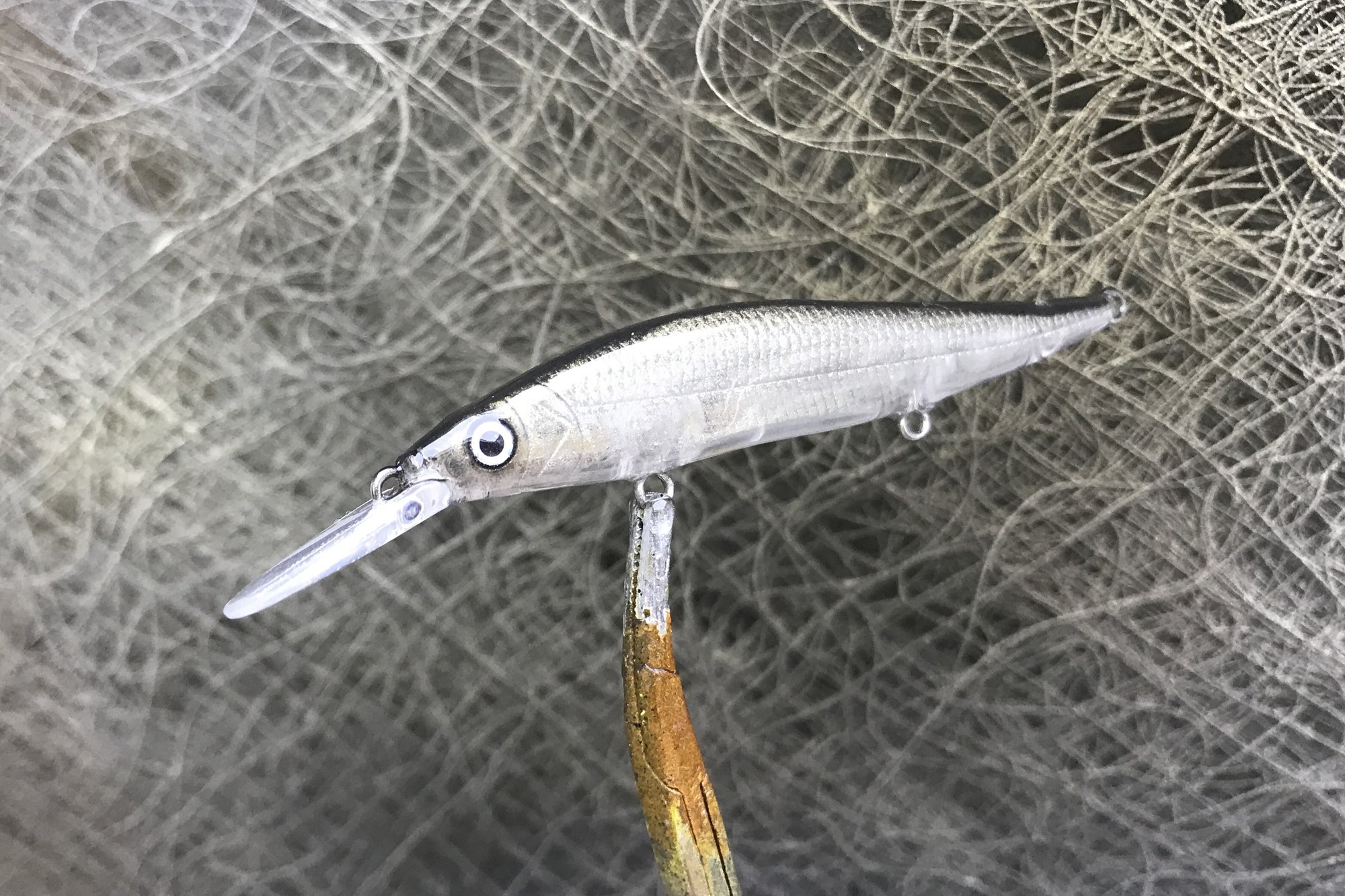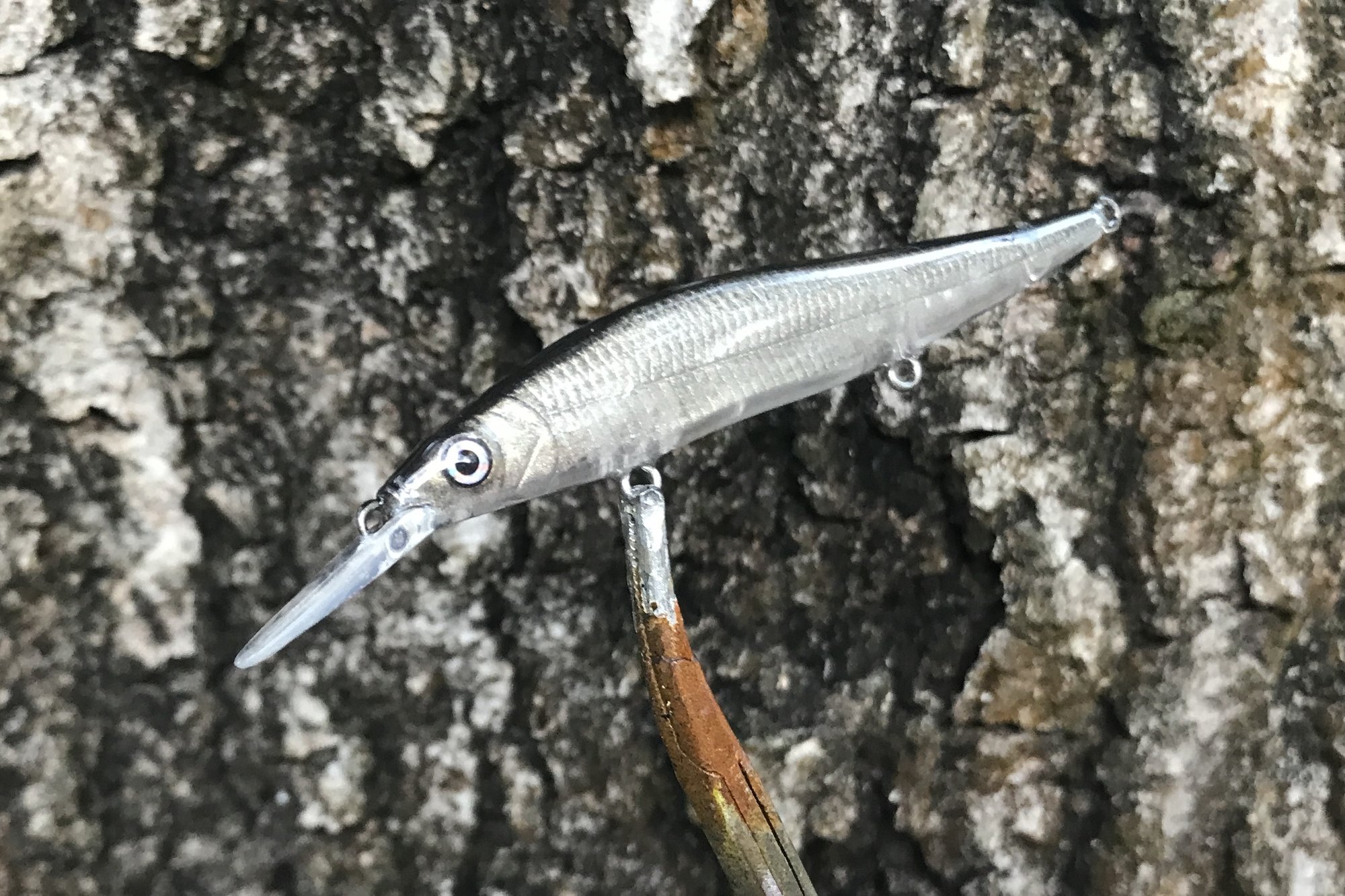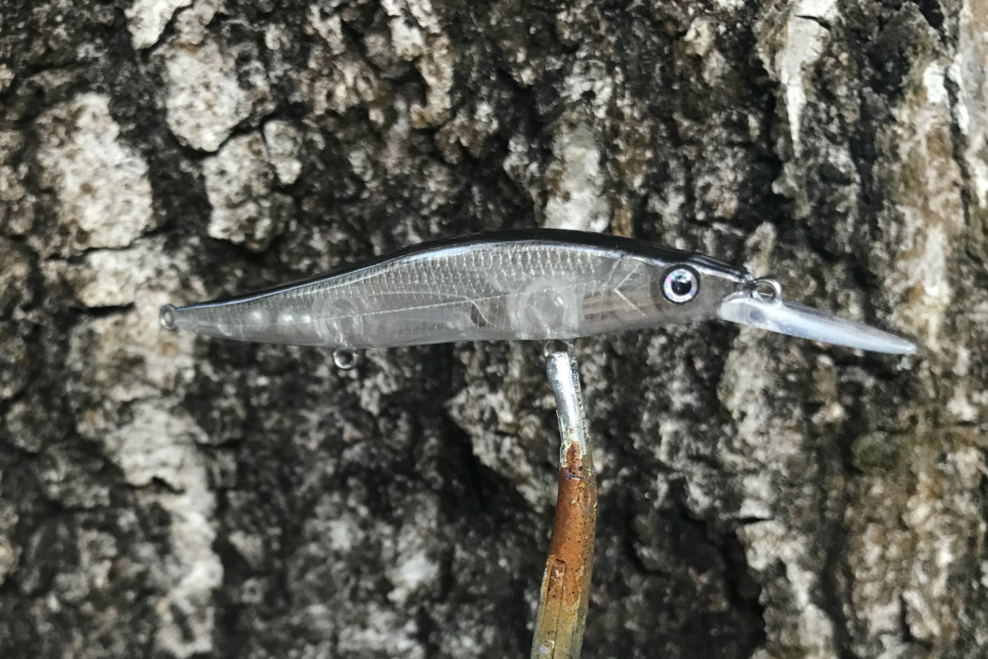 My Glass series features custom metallic blends, VMC #12 trebles and a high gloss 2X RHC clearcoat. Sinking bait, tank tested. This is the smallest bait in the 110 line, comparison pic shows 110 standard and 110 mini.