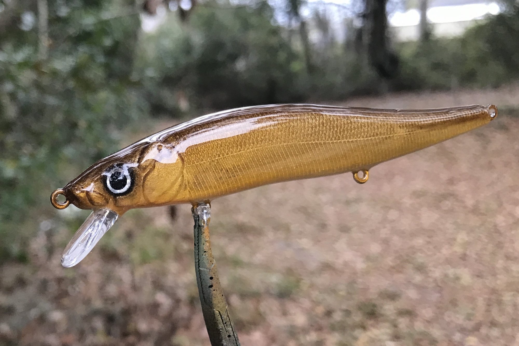 My GS series features custom eyes, premium Mustad KVD triple grip #6 trebles and a high gloss 2X RHC resin clearcoat. This is a sinking jerkbait, tank tested.