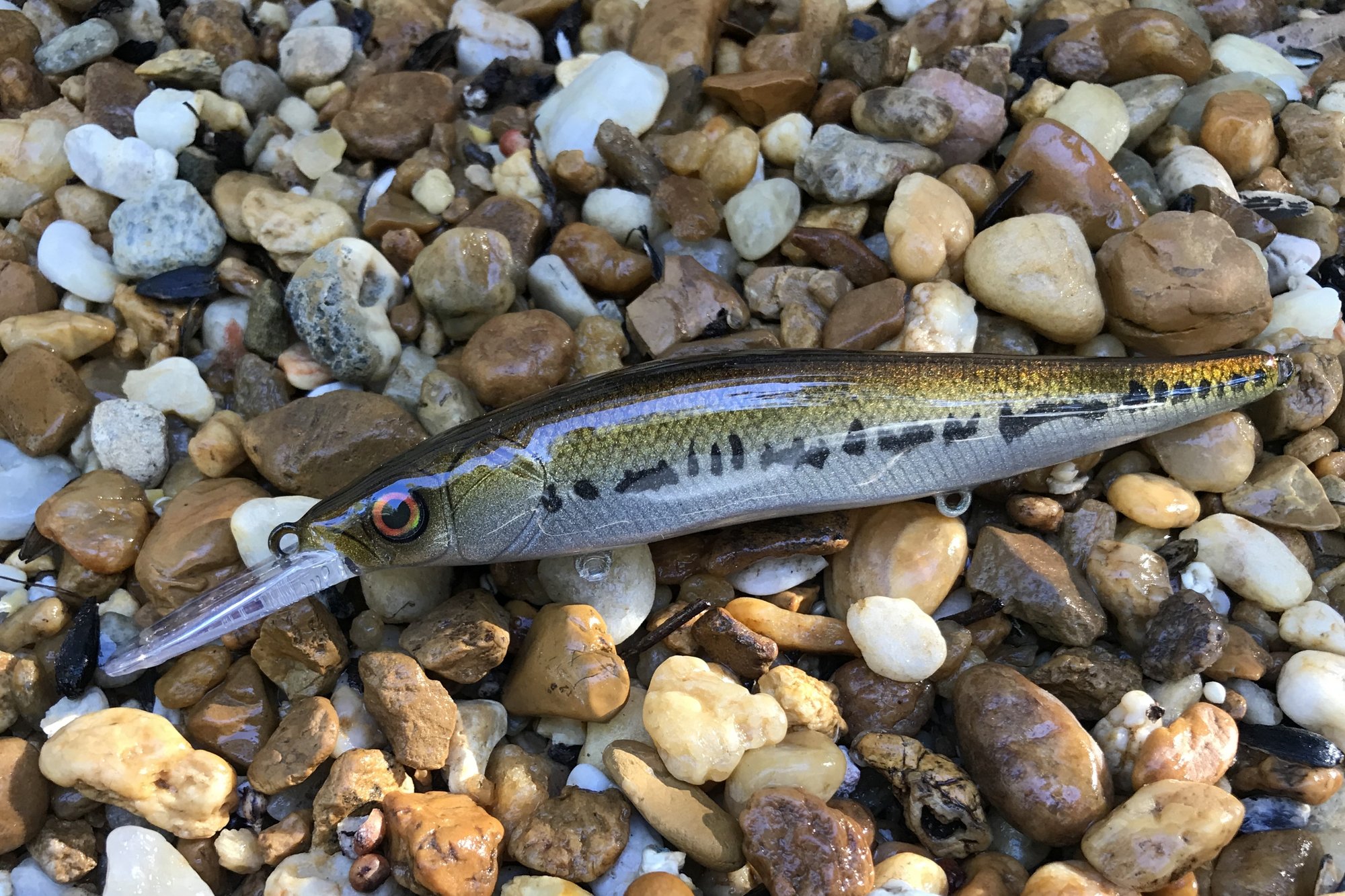 My BB series features custom eyes, KVD #6 trebles and a high gloss 2X RHC clearcoat. Floating bait, tank tested.
