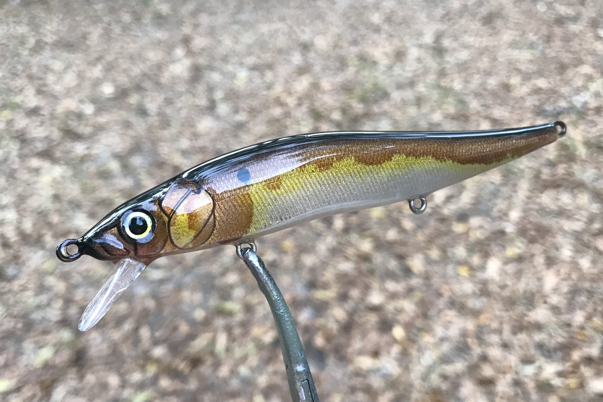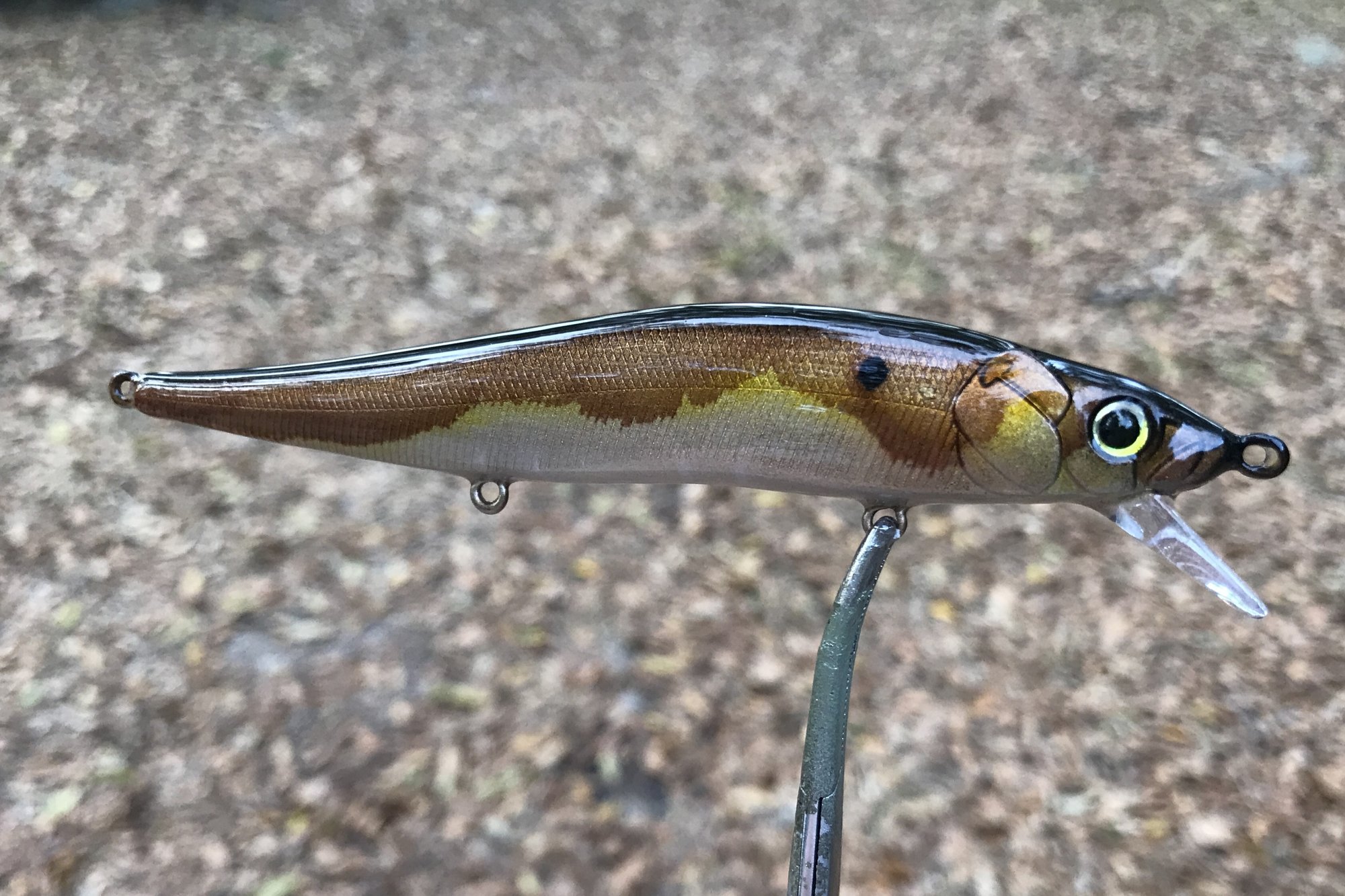 Limited run TA110 series features custom eyes, premium Mustad KVD triple grip #6 trebles and a high gloss 2X RHC resin clearcoat. This effect cannot be duplicated, you will receive bait pictured This is a suspending jerkbait, tank tested.