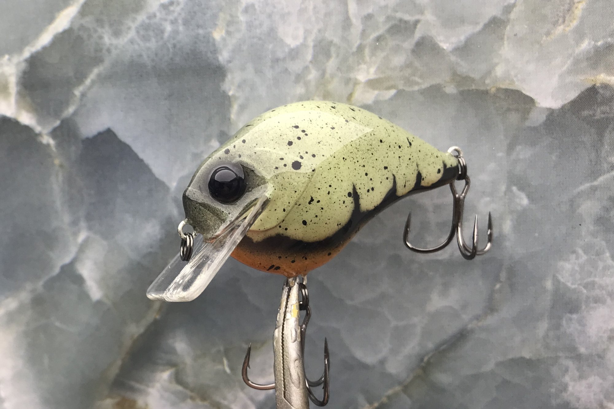 My ODG Craw series features custom eyes, #4 KVD trebles and a high gloss 2X RHC topcoat. Similar to a Megabass S-Crank 1.5