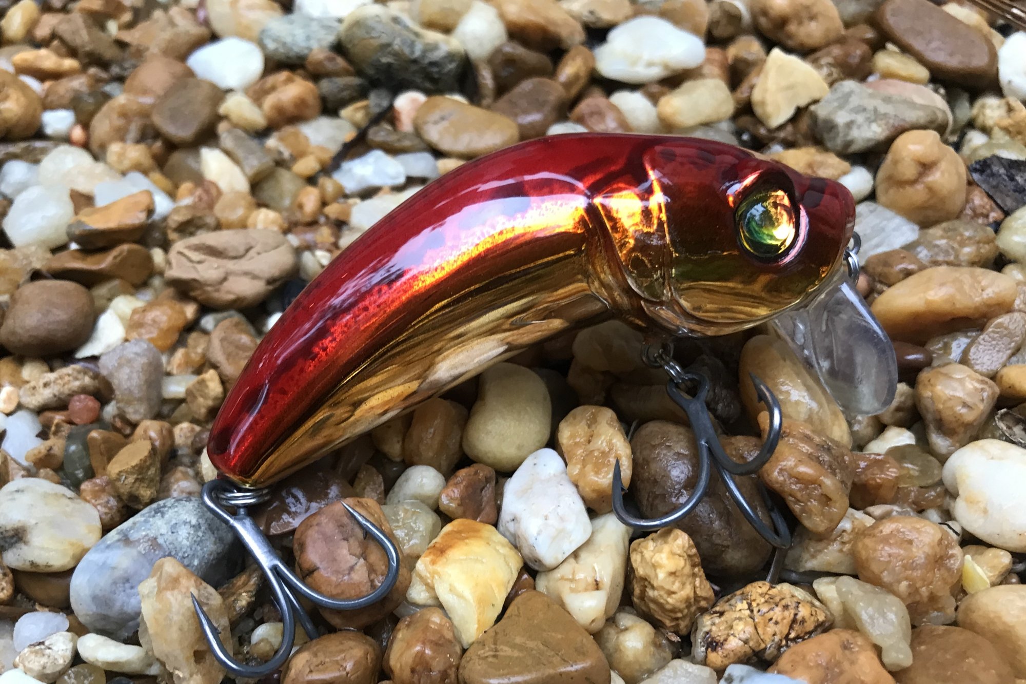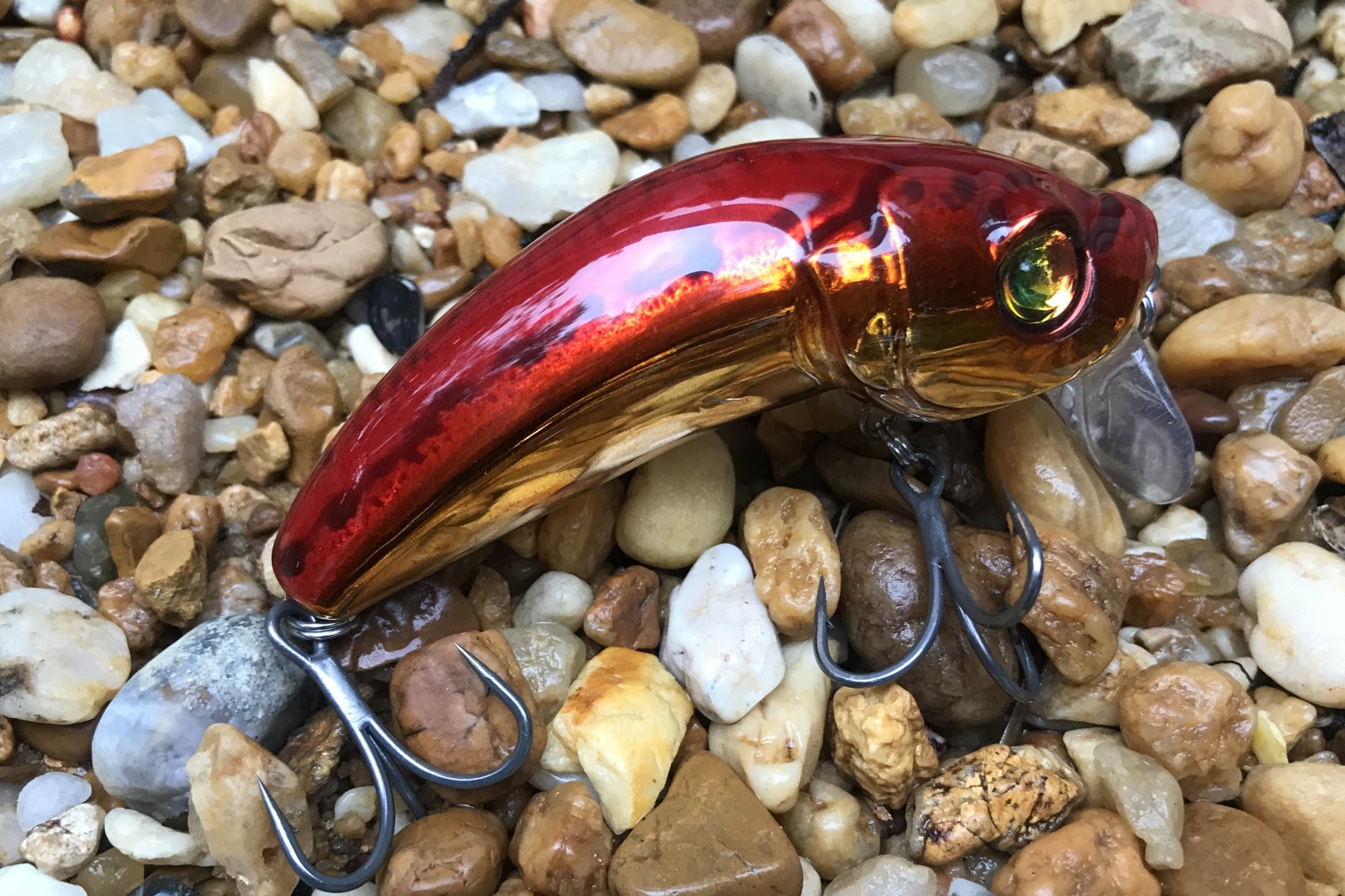 My ICW series features custom eyes, #4 Pro Grade 2X trebles and a high gloss 2X RHC clearcoat. Similar to the Strikepro Hunchback This bait is a floating lure that runs a ½ inch under the surface, shaking and rattling like a lost bait fish. Creates massive reaction strike of nearby fish. Deadly on Redfish, Trout and Bass.