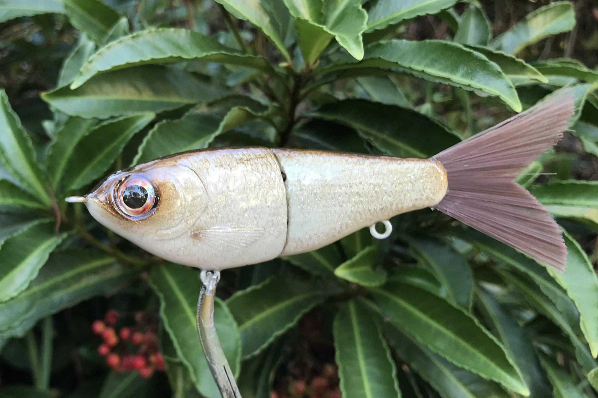 This finesse glide bait features custom eyes, pearl paints, #4 VMC hooks, and high gloss 3X RHC topcoat. I can upgrade to larger #2 hooks upon request. This is a great starter glide bait, light enough to throw with a worm rod and lethal action.