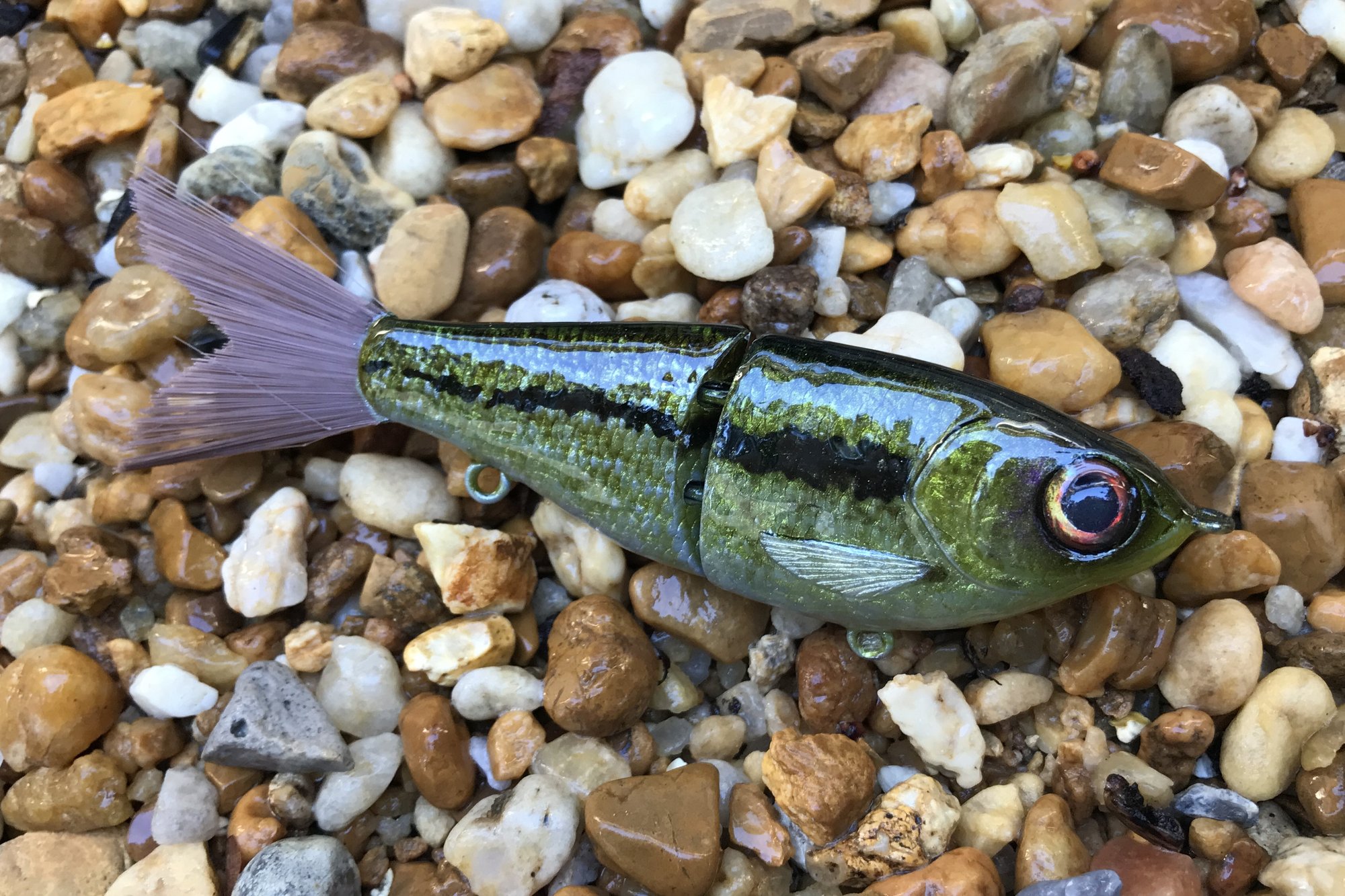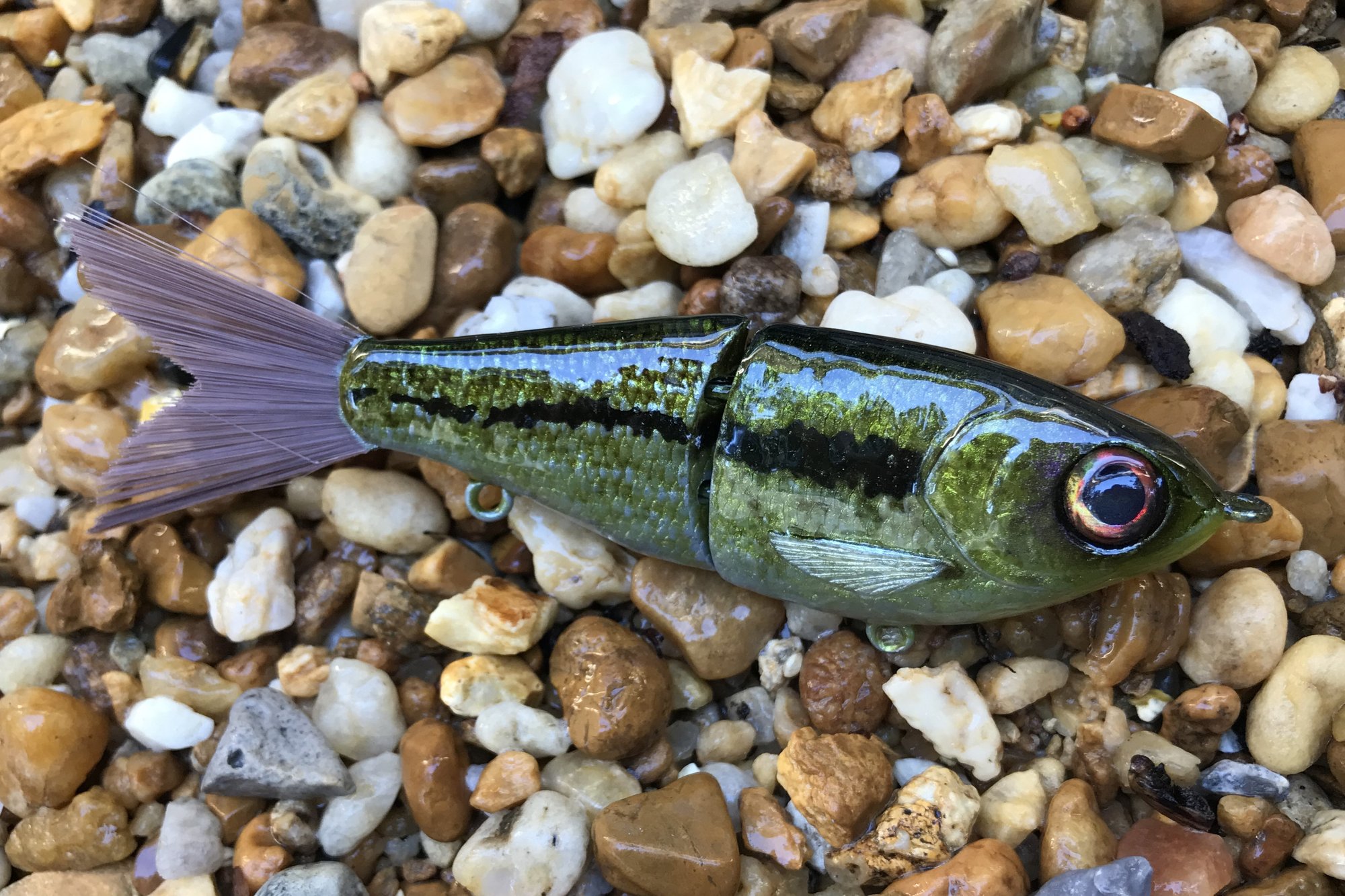 This finesse glide bait features custom eyes, pearl paints, #4 VMC hooks, and high gloss 3X RHC topcoat. I can upgrade to larger #2 hooks upon request. This is a great starter glide bait, light enough to throw with a worm rod and lethal action.