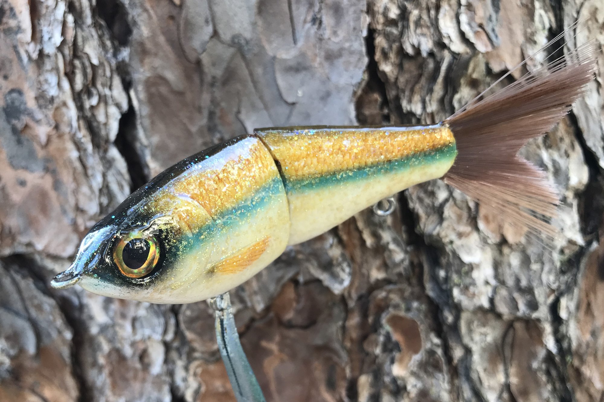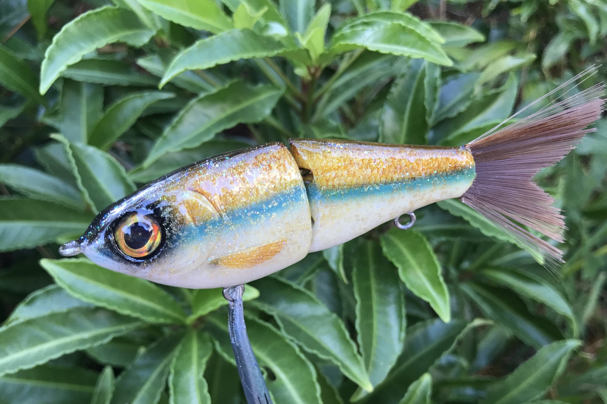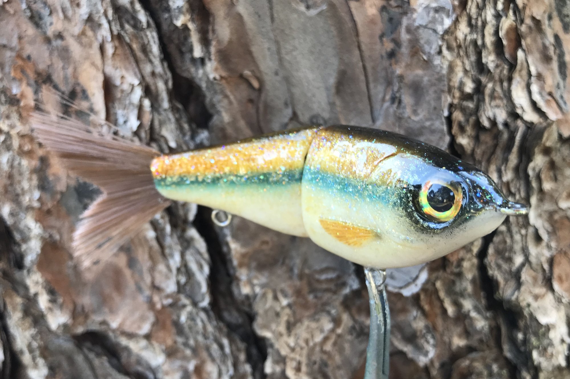 This finesse glide bait features custom eyes, heavy metallics, #4 VMC hooks, and high gloss 3X RHC topcoat. I can upgrade to larger #2 hooks upon request. This is a great starter glide bait, light enough to throw with a worm rod and lethal action.