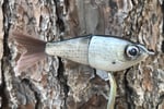 This finesse glide bait features custom eyes, pearl paints, #4 VMC hooks, and high gloss 3X RHC topcoat. I can upgrade to larger #2 hooks upon request. This is a great starter glide bait, light enough to throw with a worm rod and lethal action.