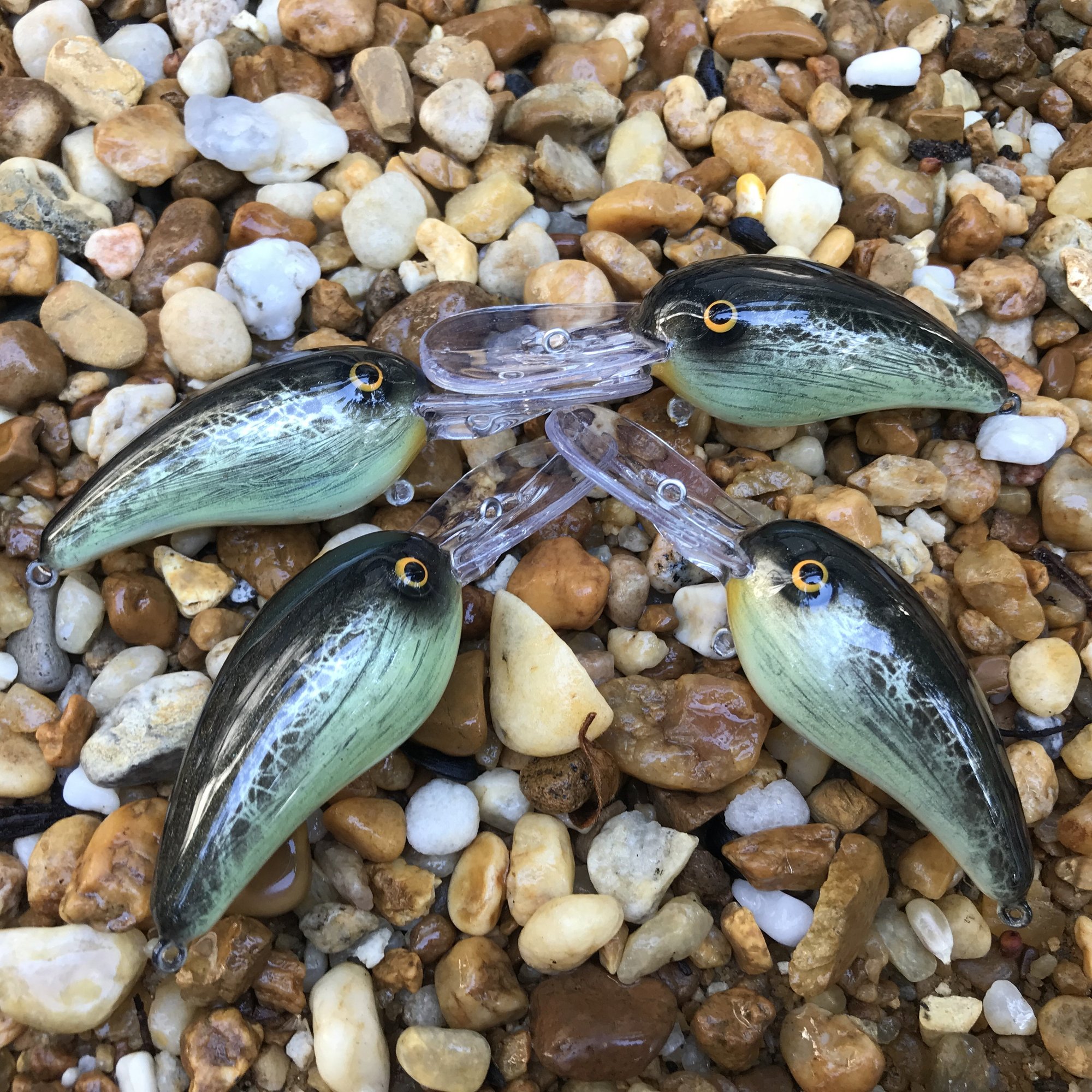My B1 series features hand painted eyes, distressed look, colorshifts, VMC #4 trebles, and a high gloss 2X RHC topcoat.