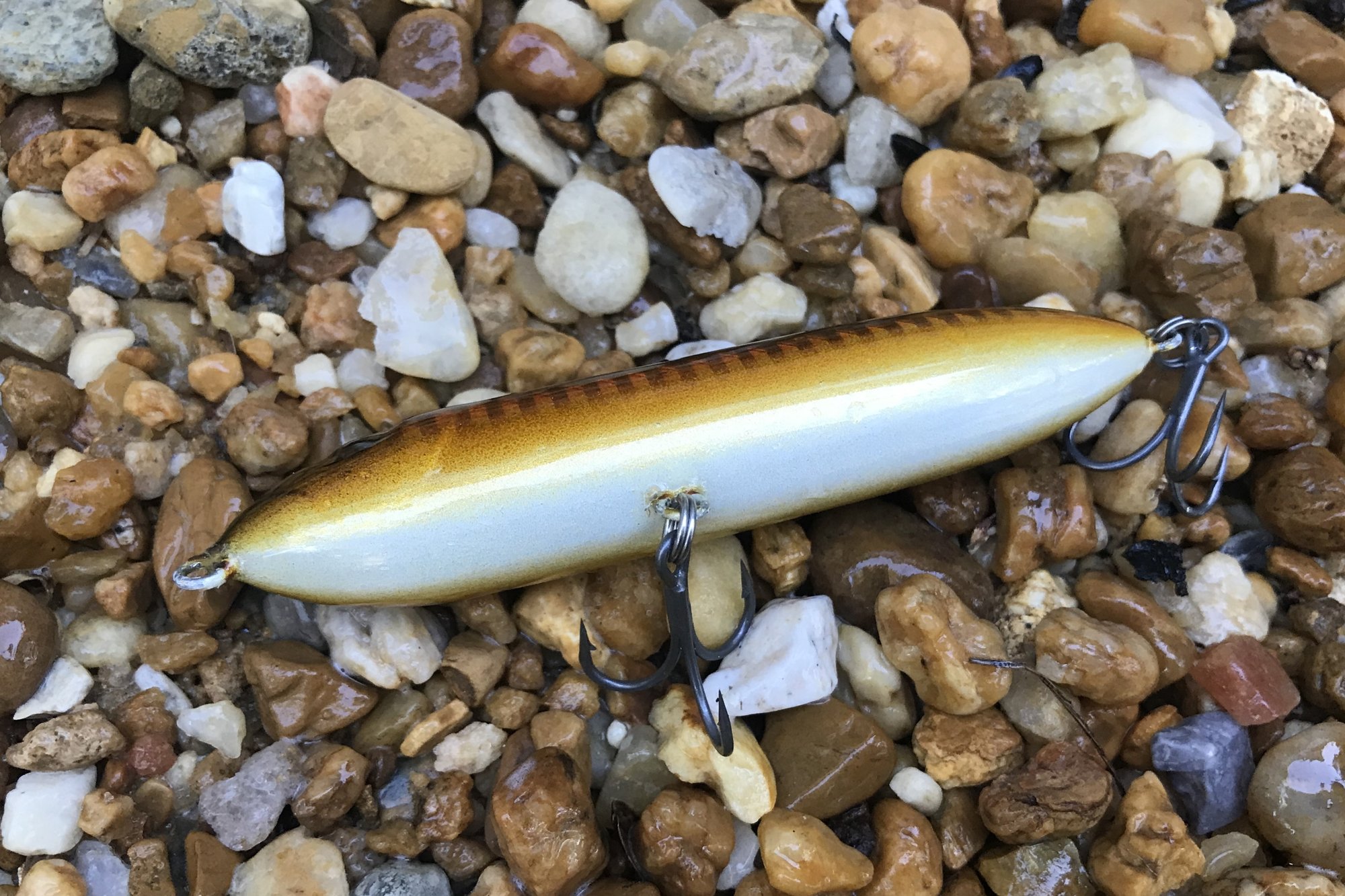 This listing is for one SPOOK JR CLONE. Each bait is hand painted with great care and attention to detail. Most feature custom eyes made by me and decals unique to each bait. Baits are finished with multiple layers of resin or premium marine grade clearcoat and cured in Florida sunshine.